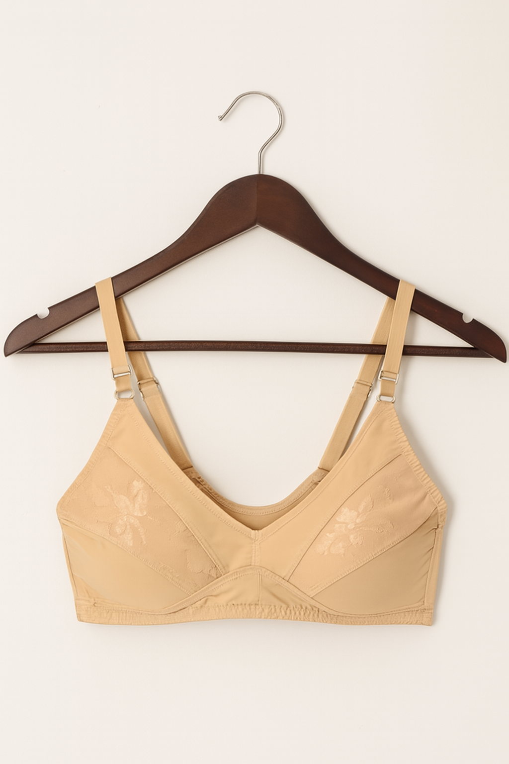 Half Jali Jersi Bra – Comfortable Everyday Wear with Floral Design | Skin Color