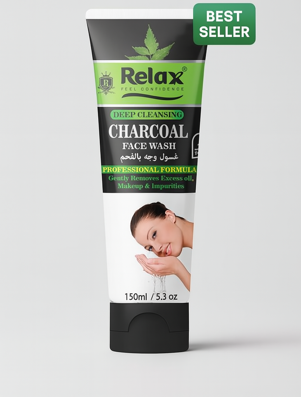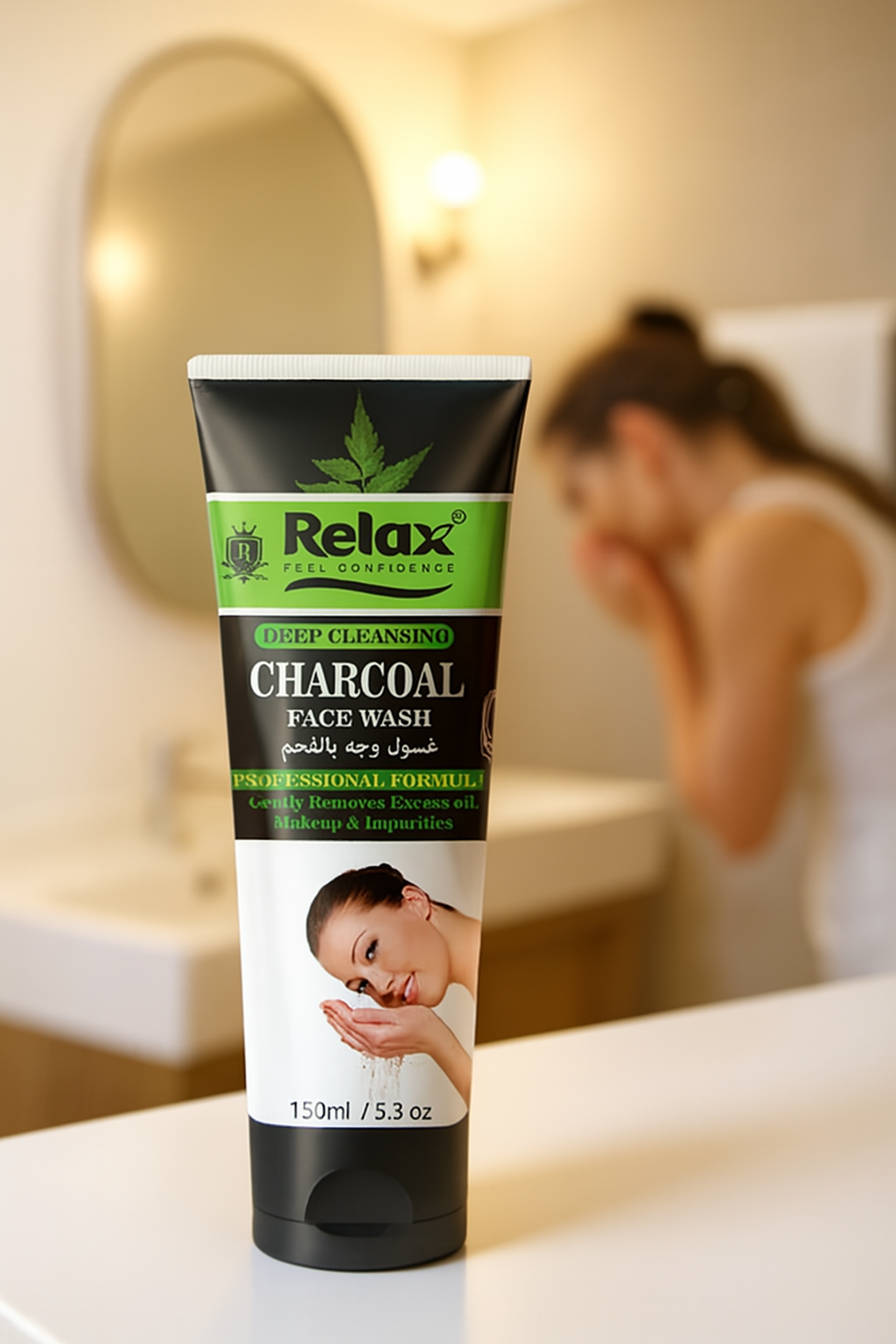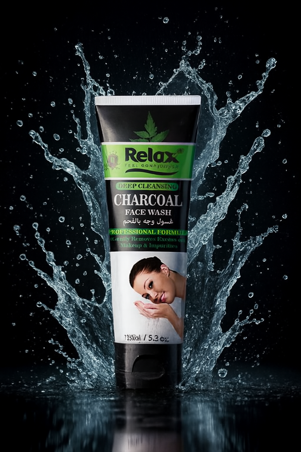 Relax Charcoal Face Wash 150ml deeply cleanses skin, removes excess oil, makeup, and impurities for a fresh, smooth look.